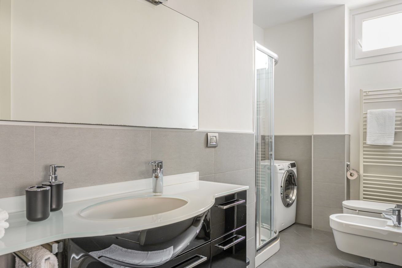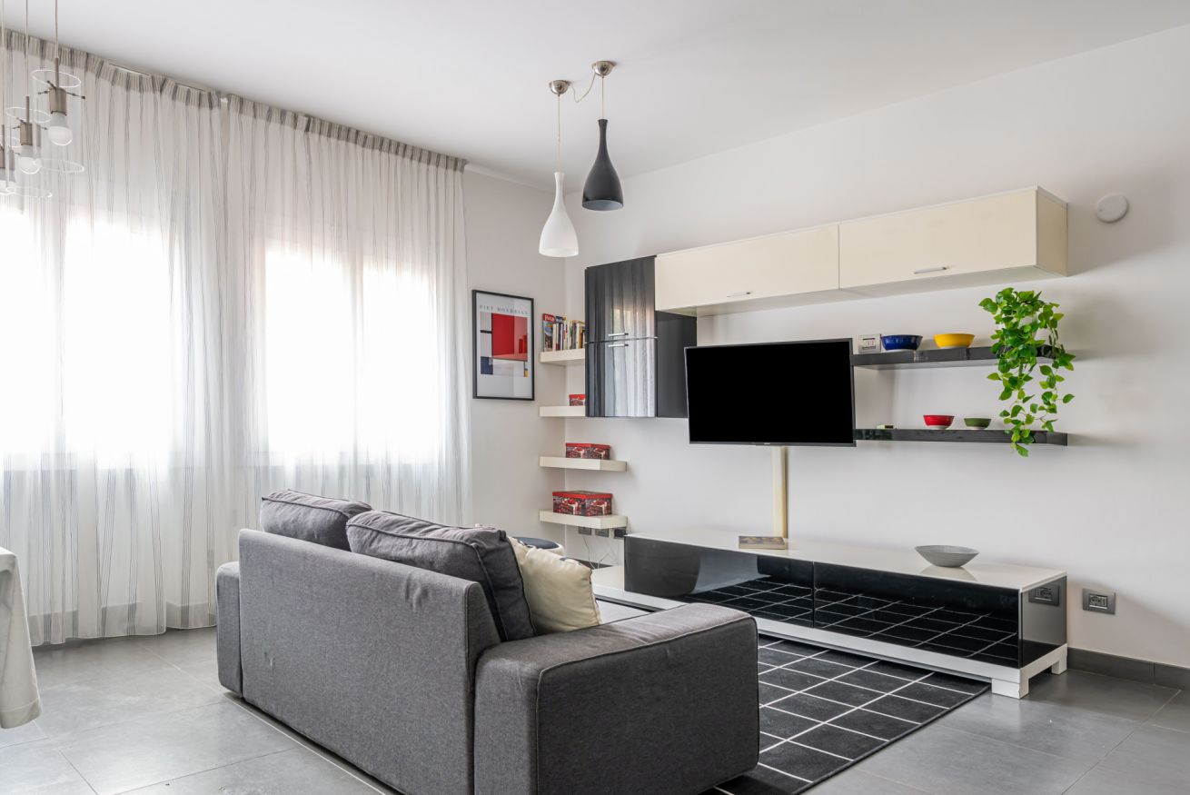 ULTERIORI SERVIZI A DISPOSIZIONE DEGLI OSPITI: wifi illimitato, aria condizionata (in soggiorno e in camera da letto), riscaldamento centralizzato, lavasciuga (in bagno), ferro e asse da stiro, stendibiancheria e asciugacapelli.
