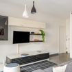 - SOGGIORNO con ANGOLO COTTURA (piano cottura a gas, frigorifero, freezer, lavastoviglie, forno, forno a microonde, tostapane, bollitore, moka, calici da vino e vari utensili da cucina), tavolo da pranzo, divano, TV e split A/C;