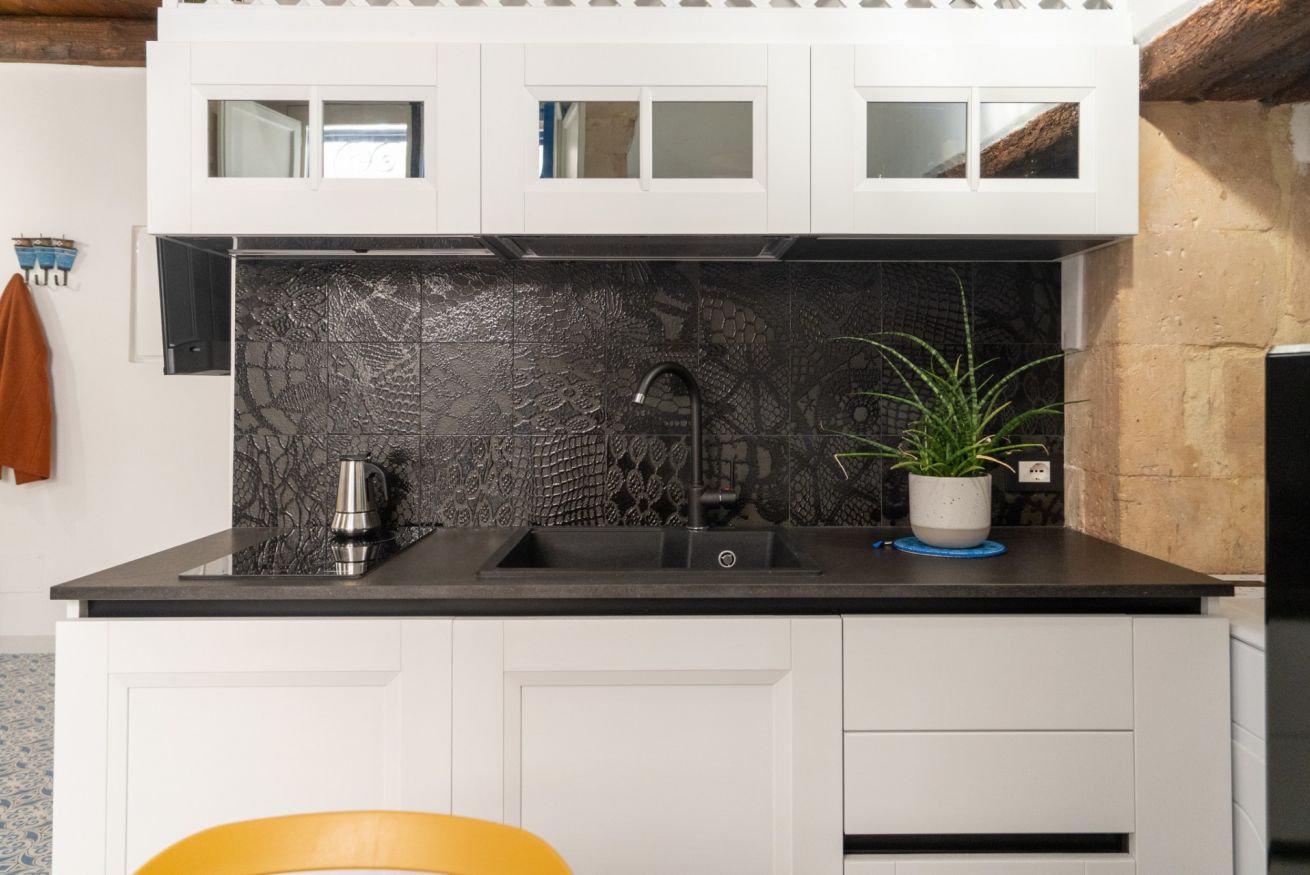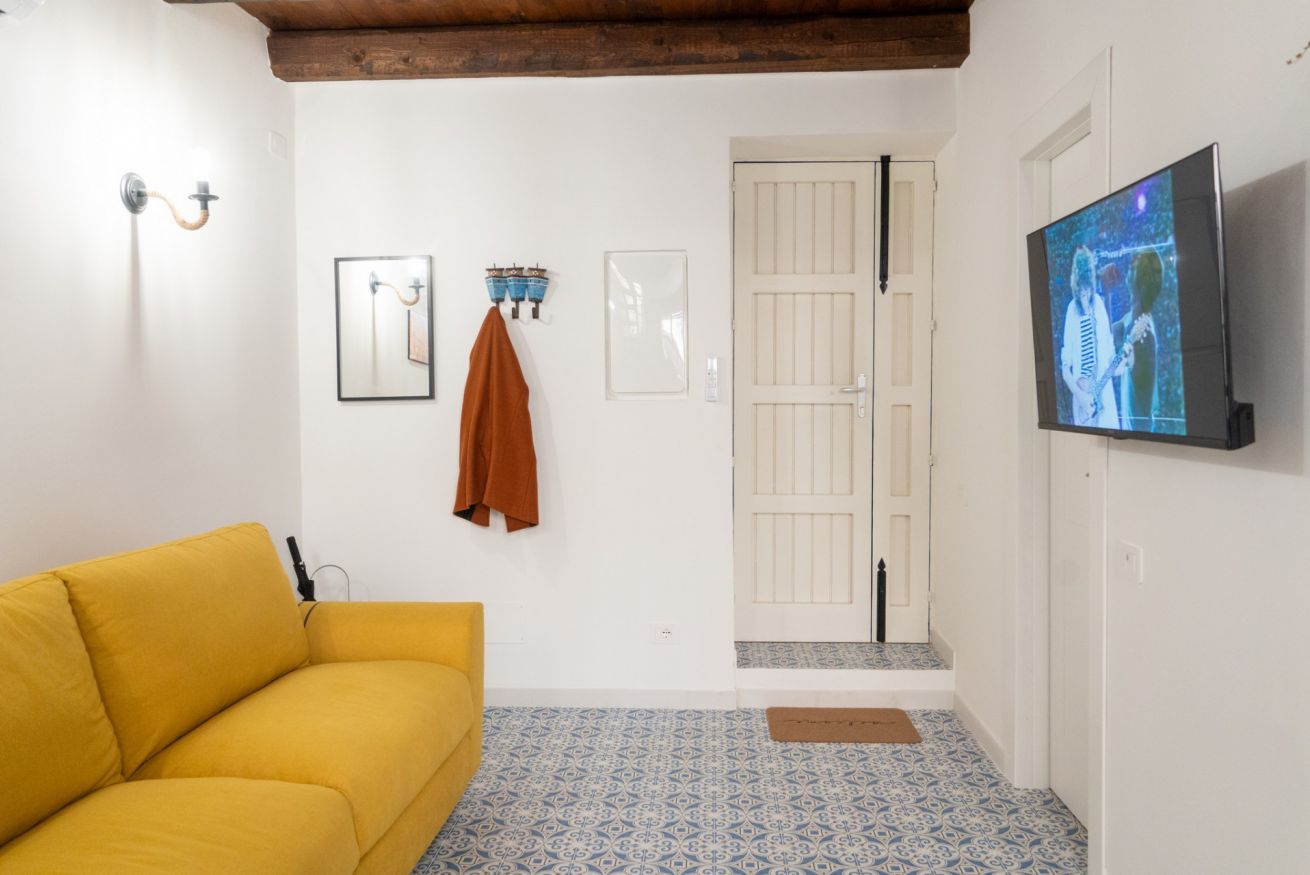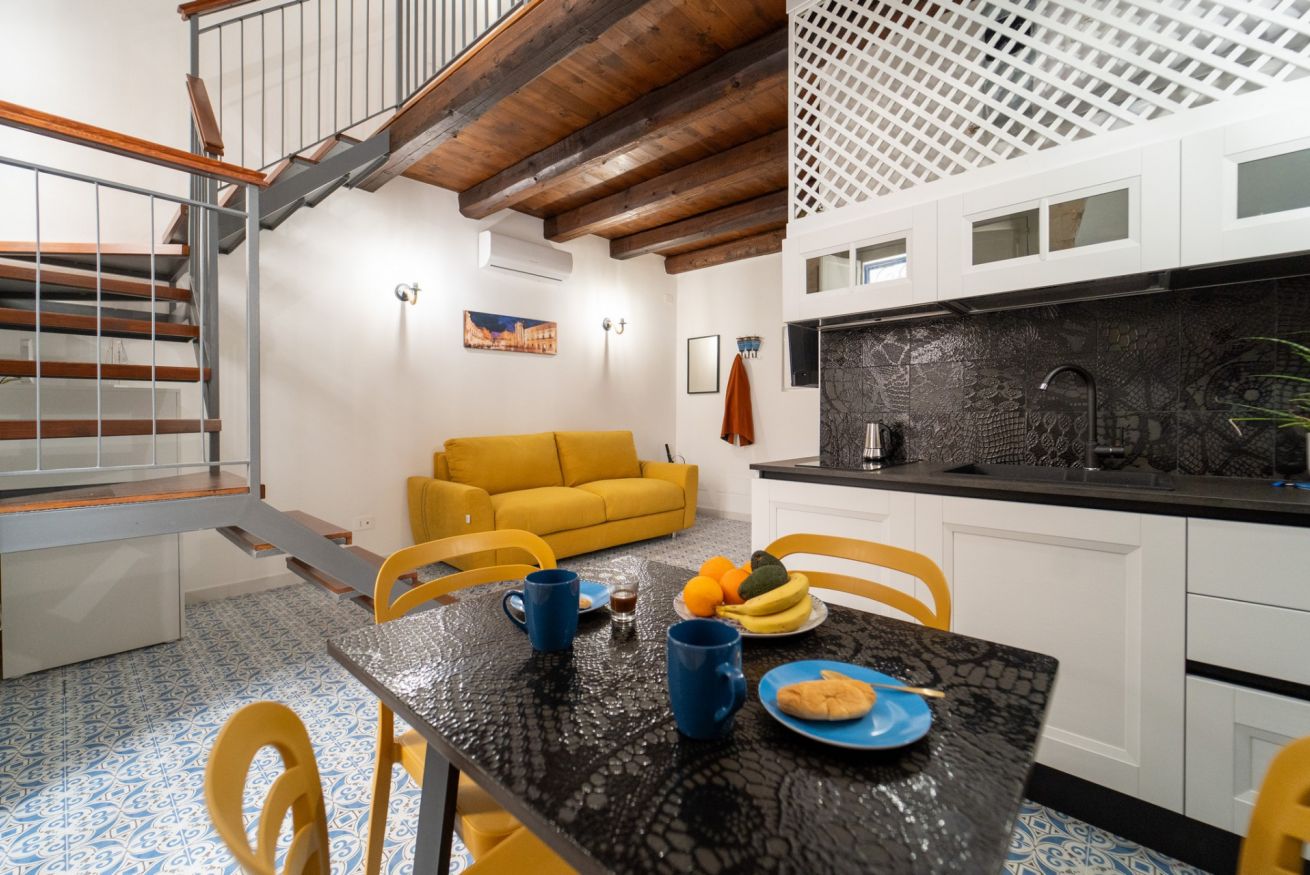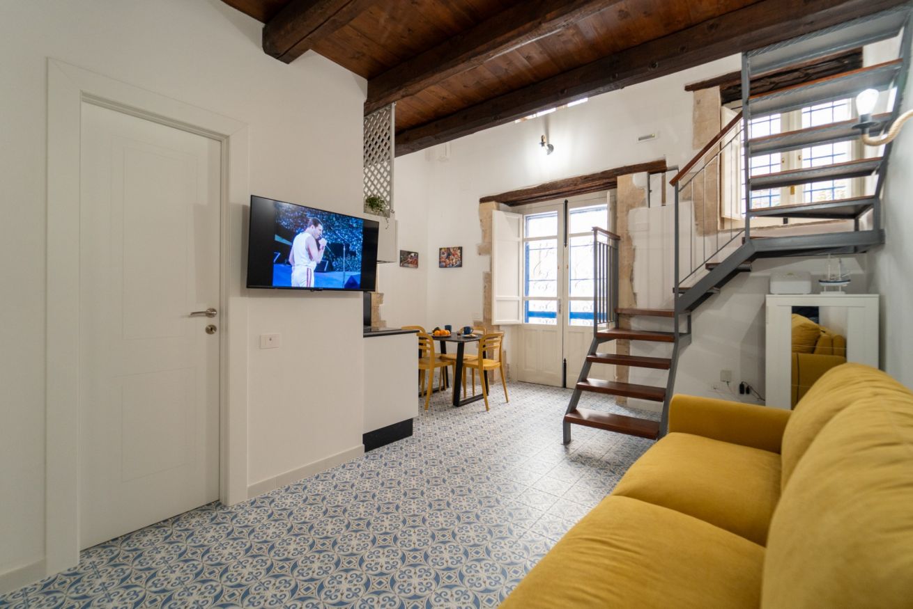 Characteristic 48 sqm apartment with mezzanine, for 4 people, located on the ground floor of a historic building (step at the entrance). There are stairs inside the property. The accommodation is located in the Restricted Traffic Area, on the island of Ortigia, the enchanting historic center of Syracuse.