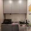 - ANGOLO COTTURA con piano cottura elettrico (2 piastre), frigorifero, freezer, lavatrice, forno a microonde, macchina del caffè, bollitore elettrico, tostapane, utensili da cucina e calici da vino;