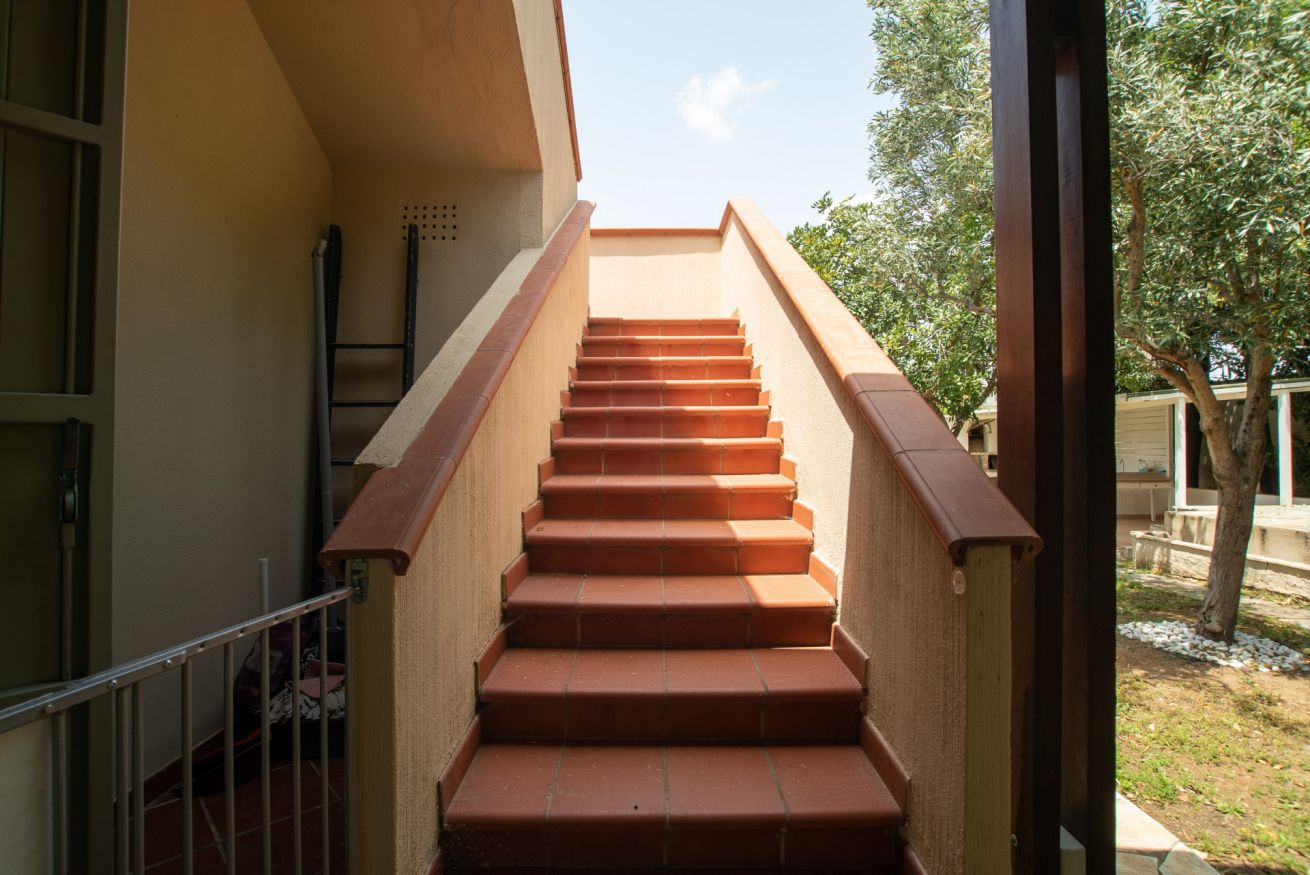 The accommodation of 130 sqm is entirely on the ground floor. Please pay MORE ATTENTION to the step (1) to access and the stairs to access the terrace.