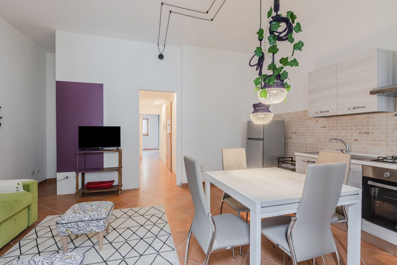 - LIVING ROOM with KITCHENETTE (with gas hob, fridge with freezer, moka coffee maker, kettle, oven, kitchenware and wine glasses), double sofa bed, dining table, 32" TV, split A/C and access to balcony I;