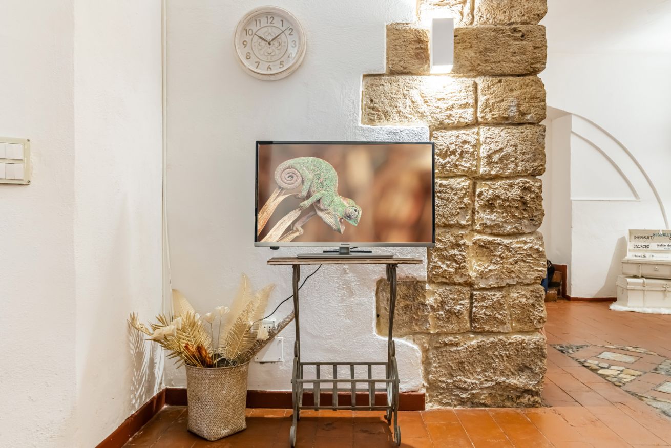 - LIVING ROOM with double sofa bed, dining table and flat-screen smart TV;