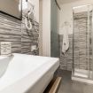 - BATHROOM with shower (raised), sink, bidet and toilet.