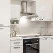 - Cucina con con tavolo da pranzo, split A/C, TV e angolo cottura attrezzato con piano ad induzione, frigorifero, forno tradizionale e macchina del caffè