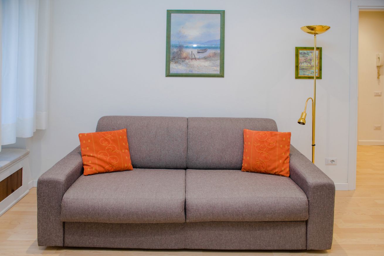Modern and renovated one bedroom apartment of 52sqm, this accommodation is composed by entrance hall, living room with dining area and queen sofa bed. The kitchenette is equipped with induction hob, fridge, freezer, traditional oven, dishwasher, electric kettle and moka. The bedroom has two single beds that can be joined if required into a queen bed and a wardrobe. Small attached balcony. Toilet is with shower. Further services available to the guests: WIFI, TV, hairdryer, washing machine, iron and ironing board, drying rack.