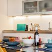 - Angolo cottura attrezzato con piano ad induzione, frigorifero, congelatore, macchina del caffè, lavastoviglie e forno tradizionale
