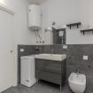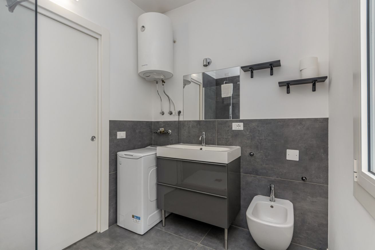 - BATHROOM with box shower, sink, toilet, bidet and washing machine