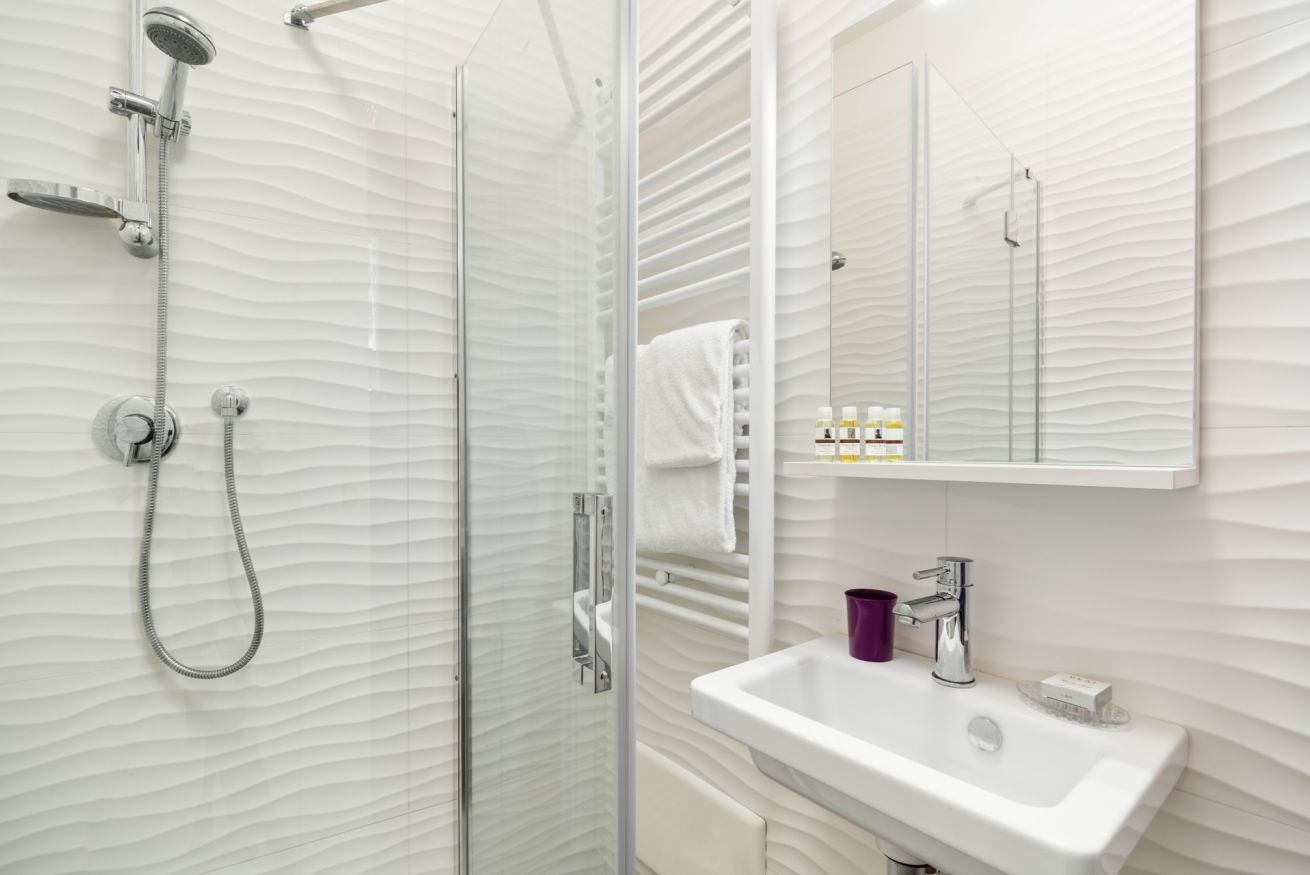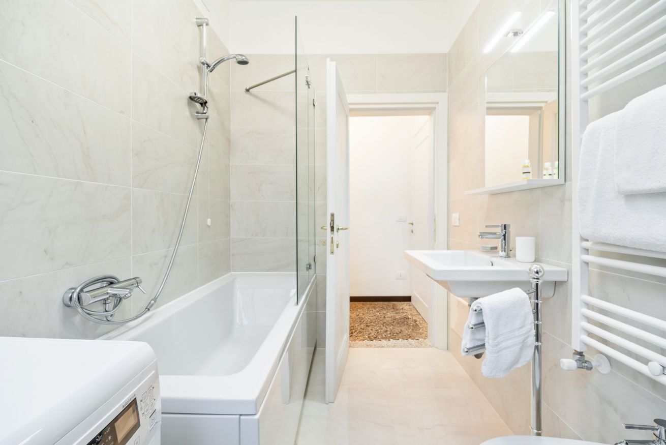 -BATHROOM 1: walk-in shower, bidet, toilet, washing machine.