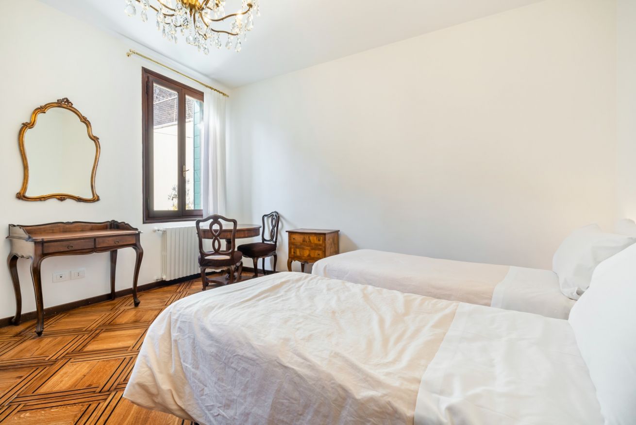 Large and bright 145sqm apartment with terrace, located in the center of Venice (sestriere Castello), 5 mins from San Marco and Rialto Bridge and 2mins from the lively Campo S.Maria Formosa. Located on the second floor, without lift, of a Venetian period building, the apartment is characterized by large and comfortable rooms. The location is strategic to visit the city. You can also get there by boat, as the Calle has a convenient landing place a few meters from the door of the building.
