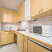 - Cucina attezata con piano cottura a gas, frigorifero, congelatore, bollitore elettrico, forno elettrico, microonde, moka e utensili da cucina