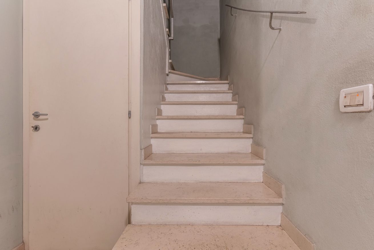 Apartment located on the first floor of a building without lift, positioned on two levels. There are 20 steps inside to access the bedroom and bathroom.