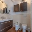 BATHROOM (inside the room). Shower cubicle, bidet, toilet, sink and hairdryer.