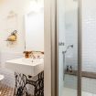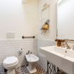 Bagno completo con doccia, lavabo, bidet e wc.