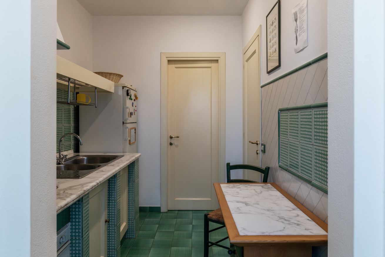 KITCHEN: four gas burners, fridge and freezer, moka, electric kettle, traditional oven, citrus juicer, wine glasses and various kitchen utensils.