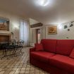 - LIVING ROOM with KITCHENETTE (gas hob, fridge, freezer, dishwasher, oven, microwave, kettle, moka, toaster, wine glasses and other kitchen utensils), dining table, desk, sofa and Smart TV;