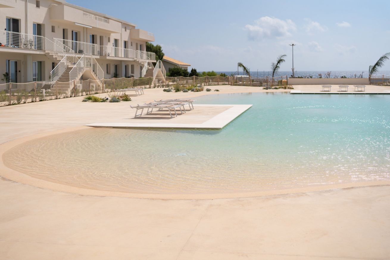 Cozy 40 sqm apartment on the ground floor, ideal for 4 people, located in a building inside the Residence Borgo 84, a few kilometers from Marzamemi.
