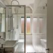 - BATHROOM with shower box, sink, toilet and bidet.