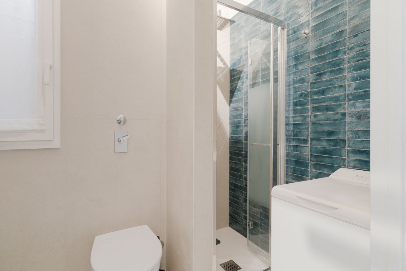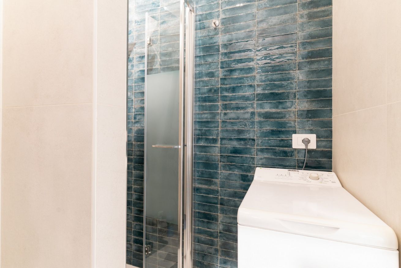 - BAGNO con box doccia rialzato, lavabo, bidet, WC e lavatrice.