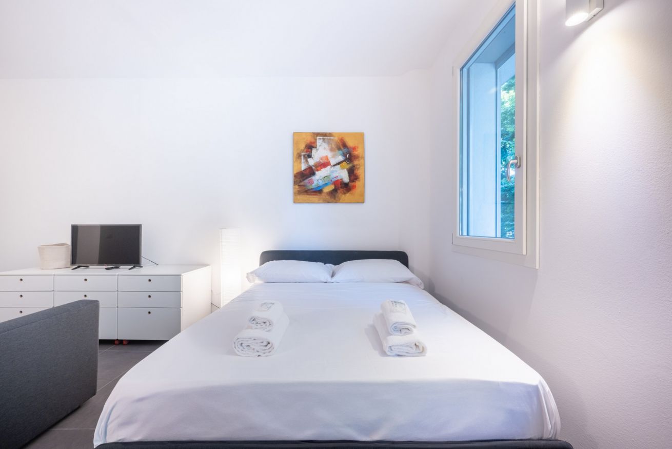 - KITCHENETTE with a two-burner glass-ceramic stovetop, refrigerator, moka pot, oven, kitchen utensils, and wine glasses;