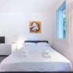 - LIVING AREA with a single sofa bed, 39" TV, double bed, wardrobe, chest of drawers, dining table and chairs, and split air conditioning;