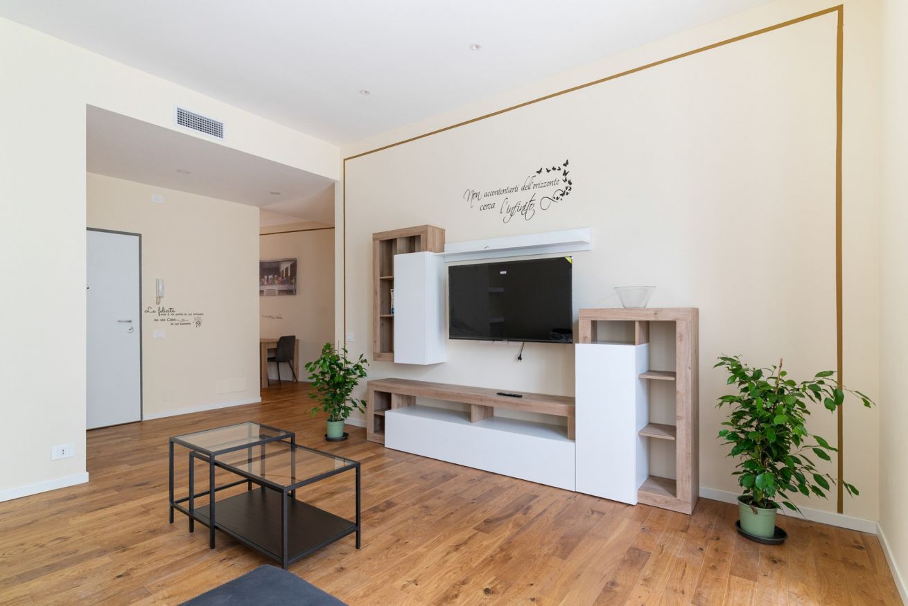 - SOGGIORNO con divano letto matrimoniale, tavolino da caffè, TV e accesso al balcone;