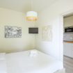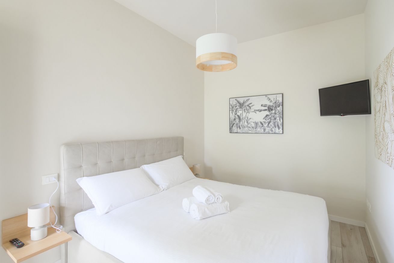 - BEDROOM with double bed (1.90 x 1.60 m), bedside tables, 24" smart TV, wall mirror, wardrobe, chair;