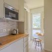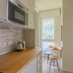 - KITCHENETTE with induction hob, dining table and chairs, refrigerator, freezer, kettle, microwave, toaster, wine glasses, kitchen utensils, and air conditioning with heat pump;