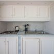 - LIVING AREA with KITCHENETTE (gas hob, fridge, freezer, microwave, moka, kettle, toaster, wine glasses and other kitchen utensils) and dining table;