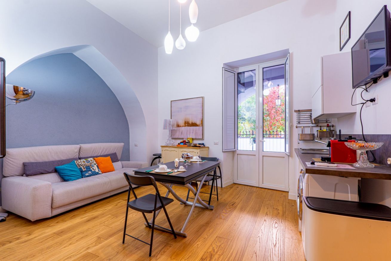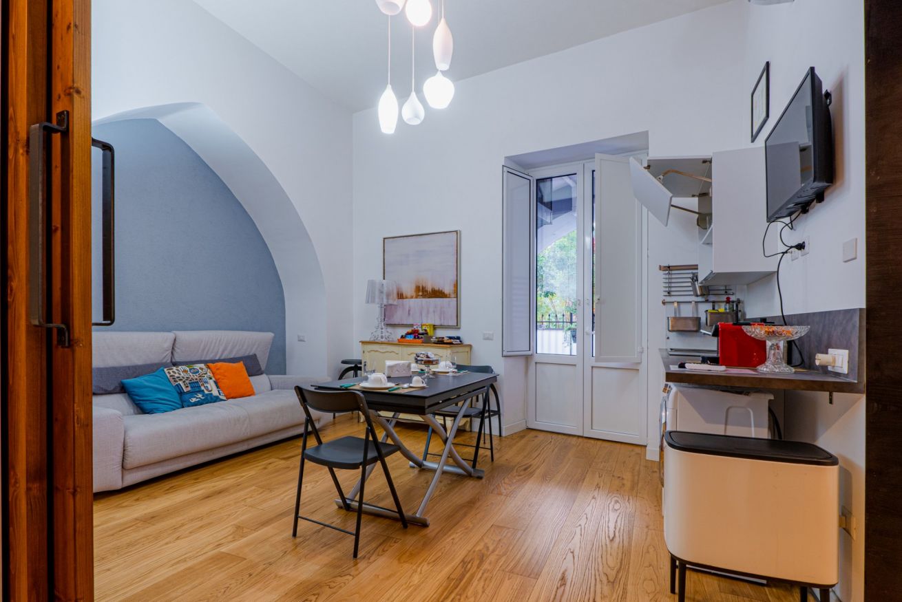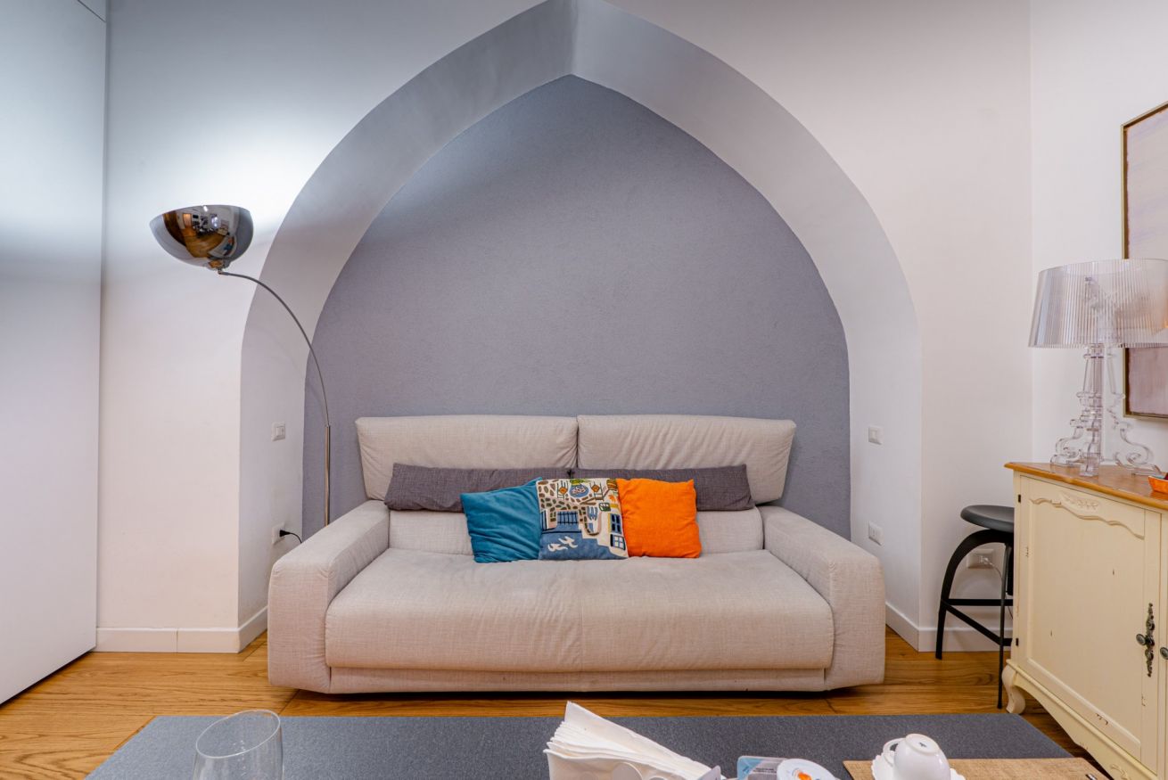 The apartment is located in the heart of Salerno, a short distance from the Teatro Verdi and the Villa Comunale, the city's main "Garden," home to various events throughout the year, including the traditional "Mostra di Minerva" in April and the renowned "Luci d'Artista" during the Christmas season. In Salerno's historic center, you'll be captivated by the charm of its characteristic alleyways, remnants of a rich history. The area is rich in churches and monuments, as well as an endless selection of all kinds of venues, restaurants, bars, and pizzerias. In about a 5-minute walk, you can reach the splendid seafront and Santa Teresa Beach, where you can admire the enchanting panorama and stroll while enjoying an ice cream, go for a jog, or rent a bike. A short walk will take you to Piazza Alfano I, where you can visit Salerno Cathedral, the city's main Catholic place of worship.