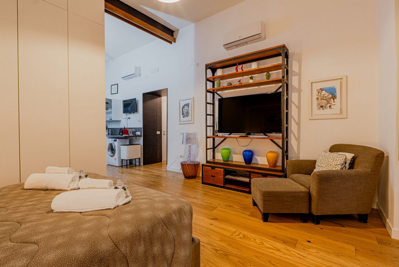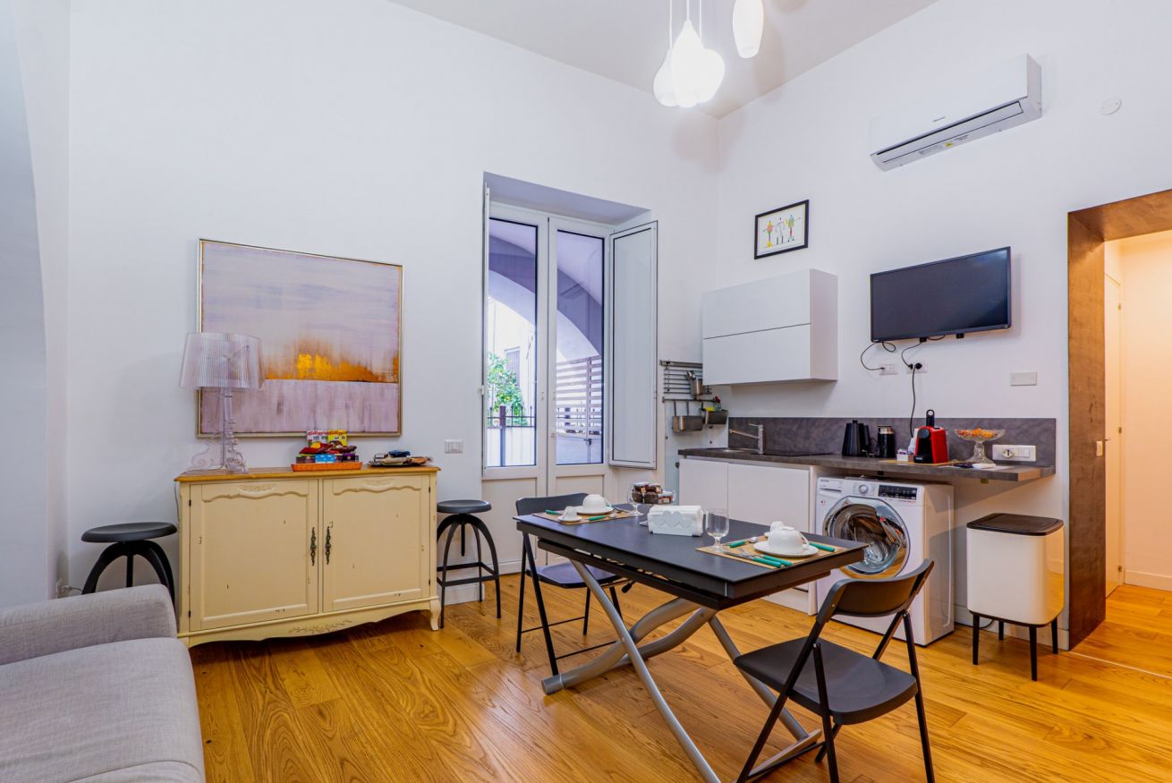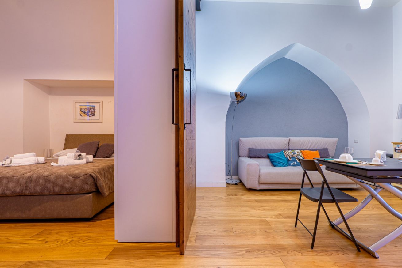 The apartment is located in the heart of Salerno, a short distance from the Teatro Verdi and the Villa Comunale, the city's main "Garden," home to various events throughout the year, including the traditional "Mostra di Minerva" in April and the renowned "Luci d'Artista" during the Christmas season. In Salerno's historic center, you'll be captivated by the charm of its characteristic alleyways, remnants of a rich history. The area is rich in churches and monuments, as well as an endless selection of all kinds of venues, restaurants, bars, and pizzerias. In about a 5-minute walk, you can reach the splendid seafront and Santa Teresa Beach, where you can admire the enchanting panorama and stroll while enjoying an ice cream, go for a jog, or rent a bike. A short walk will take you to Piazza Alfano I, where you can visit Salerno Cathedral, the city's main Catholic place of worship.