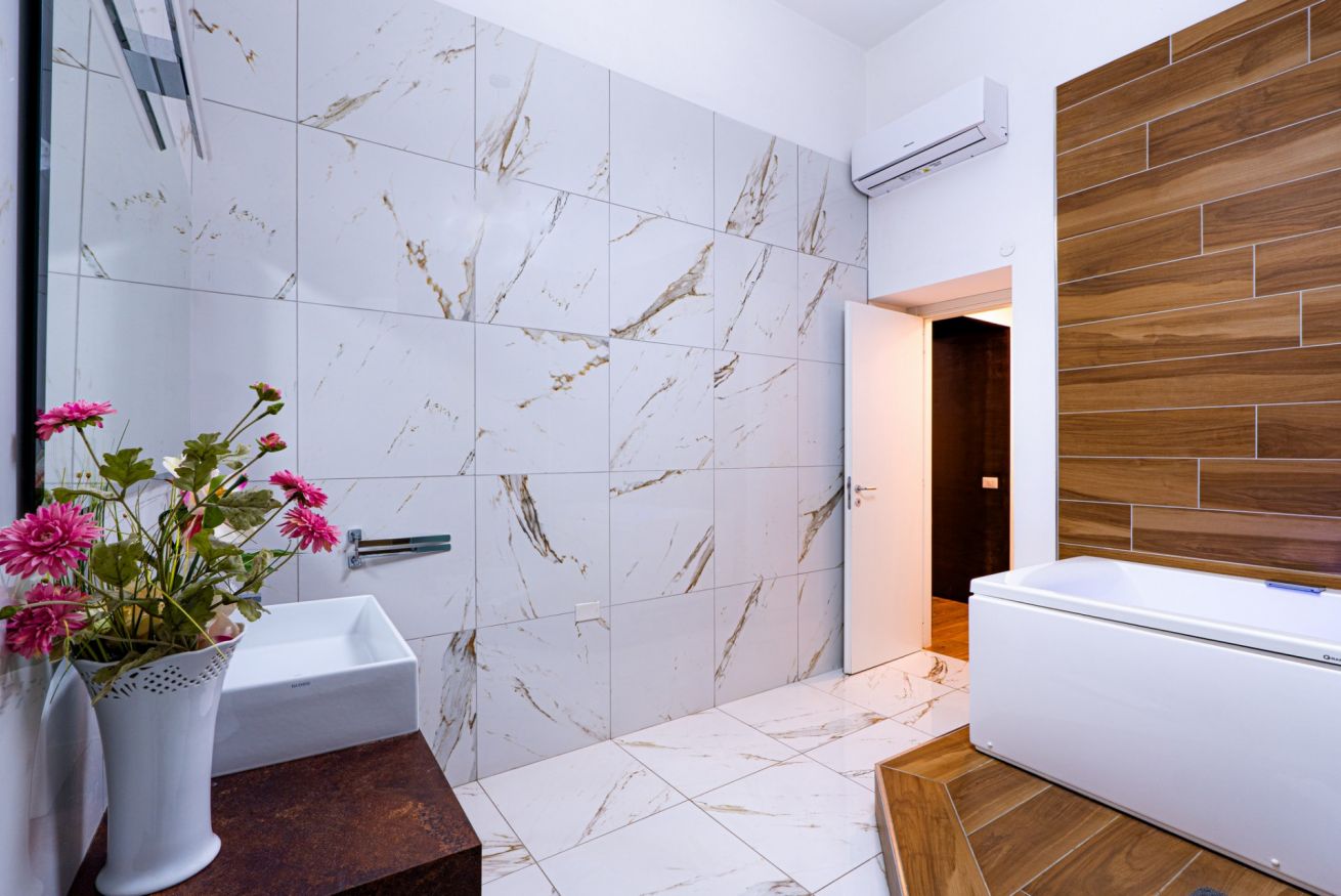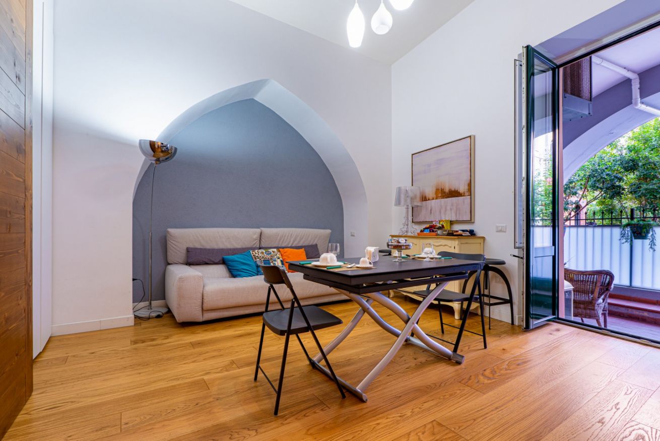 This elegant and modern 60 square meters apartment, perfect for four people, is located on the first floor of a building (no elevator).