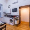 The accommodation consists of a living room with kitchenette, bedroom, small balcony, and bathroom.