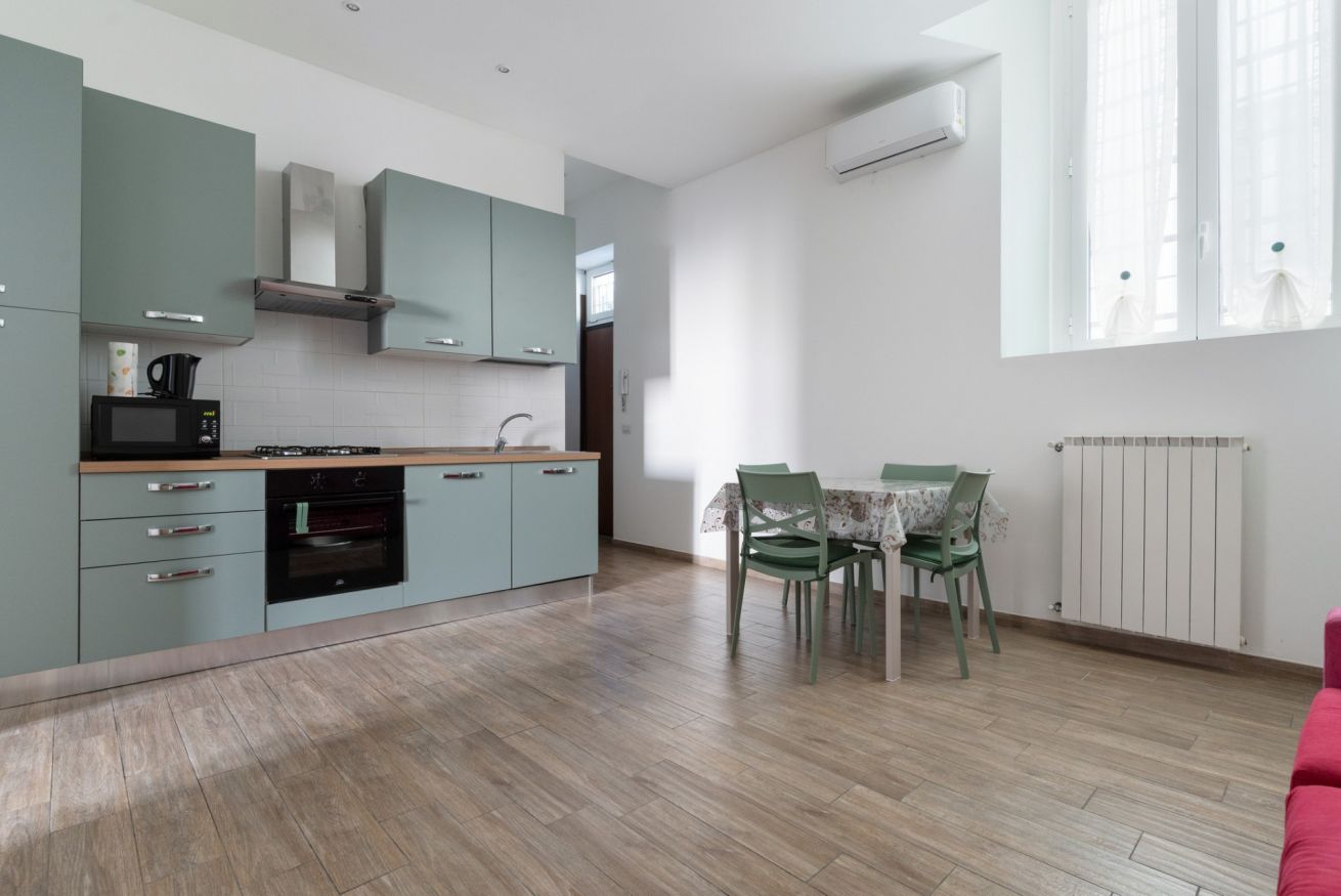 A welcoming and bright 50 sq m apartment, perfect for four people, located on the ground floor of a typical Milanese courtyard house, completely renovated.