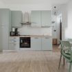The accommodation consists of a living room with kitchenette, bedroom, and bathroom.