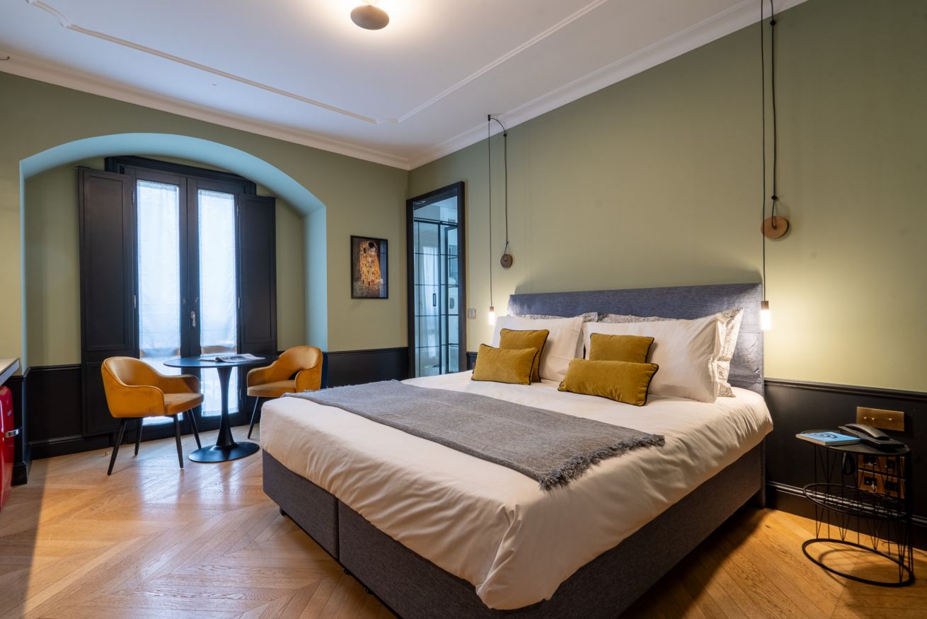 In the Kiss-Suite Klimt, fine materials, vintage fixtures, and luxurious details create an elegant and refined atmosphere. Every detail is designed to offer you a truly relaxing experience.