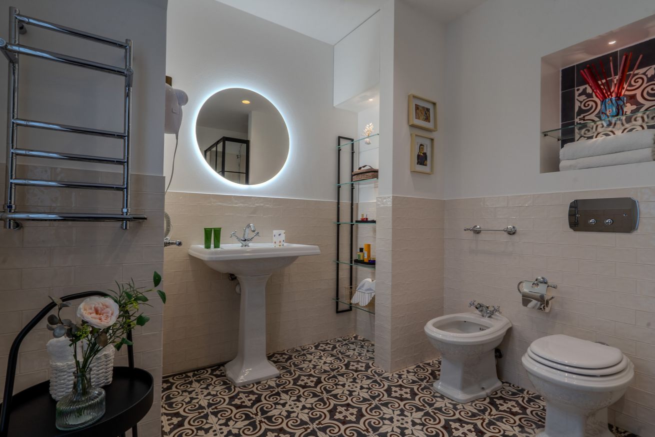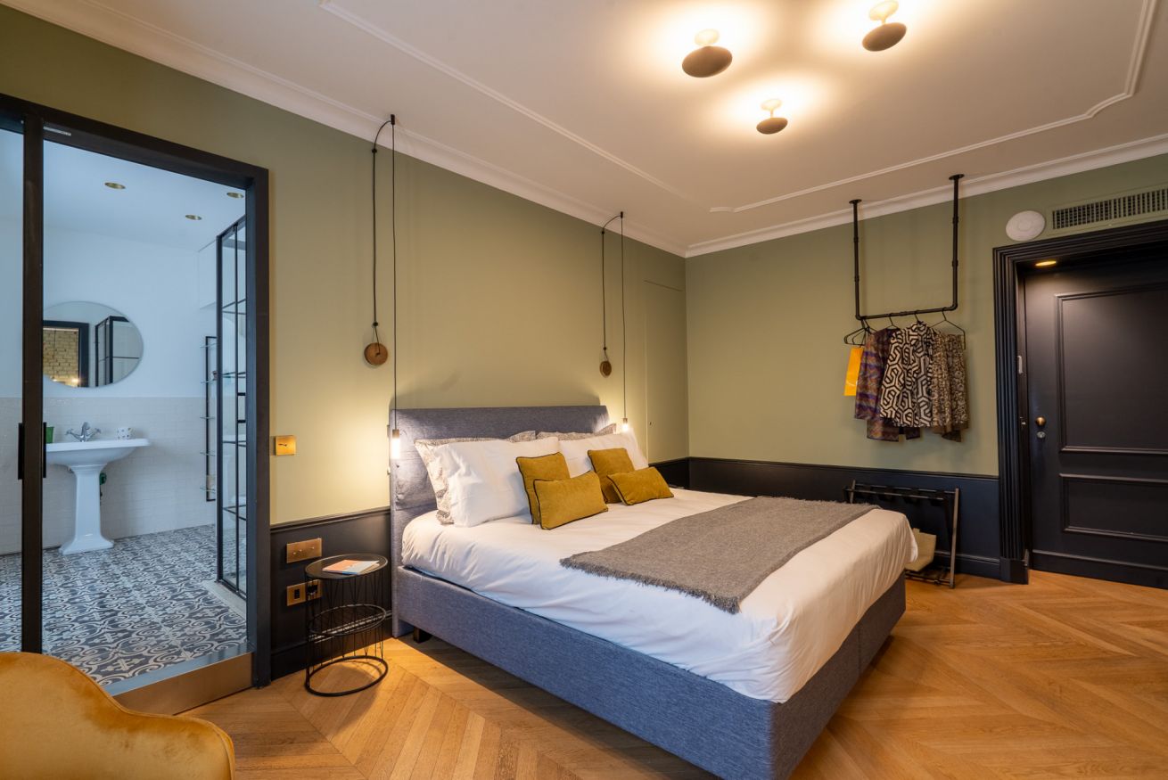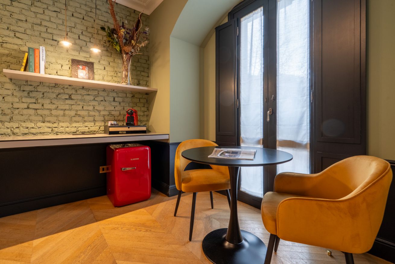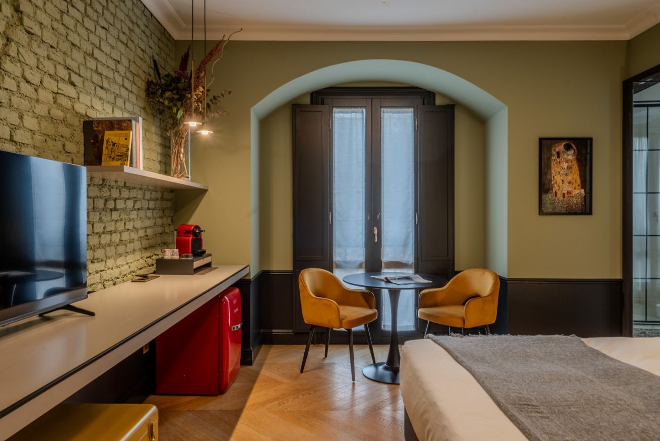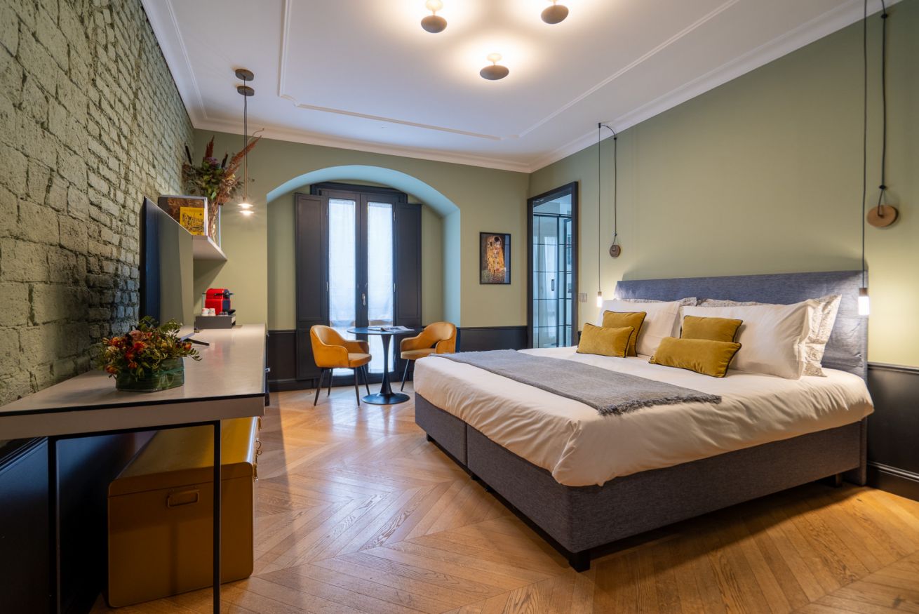 In the heart of Brera, at the intersection with 5 famous streets, in an Art Nouveau building, on the 1st floor with elevator is the post-industrial style double room. With large vintage bathroom, a king-size double bed, air conditioning, wifi, mini-bar, coffee maker, smart TV, bath linens, a nice conversation corner. The quiet suite allows you to be in a moment in Milan's nightlife, close to top restaurants and cocktail bars, high fashion boutiques, concept stores and nightclubs.