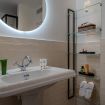 The spacious room with a bright bathroom is on the first floor (with elevator) of an early 20th-century Art Nouveau building. Renovated and quiet, it's ideal for a couple visiting Milan. You'll enjoy a relaxing stay in the heart of the historic city center, in the Brera Design District, just a short walk from the city's main art, design, and fashion attractions. The room is furnished with designer lighting, functional amenities, and ample space for reading or working. It features a 180x200 cm double bed with a quality mattress, firm and soft pillows, a laptop desk, parquet floors, air conditioning, a smart TV with Netflix, Wi-Fi, a Nespresso coffee machine, a minibar, and complimentary water. The bathroom includes a spacious shower, shampoo and shower gel, and a hairdryer. Double-glazed windows make the space particularly quiet.