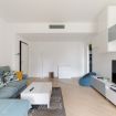 - LIVING ROOM with double sofa bed, ottoman, coffee table, smart TV, chair with desk, dining table and chairs, chest of drawers, and access to the terrace;