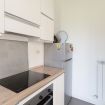 - KITCHENETTE with induction hob, oven, refrigerator, freezer, dishwasher, coffee maker, wine glasses, and kitchen utensils;