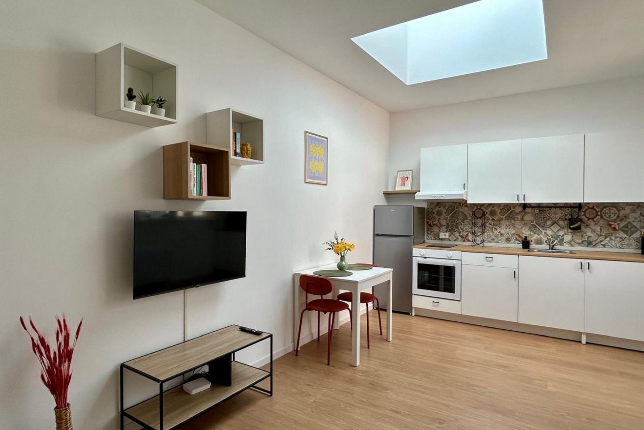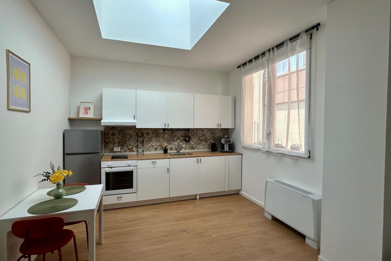 - KITCHENETTE with induction hob, oven, refrigerator, freezer, kettle, coffee machine, moka pot, wine glasses, and kitchen utensils;