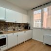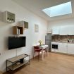 The apartment consists of a living room with kitchenette, bedroom, and bathroom.