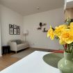 - LIVING ROOM with sofa, Smart TV, coffee table, dining table and chairs, split air conditioning;