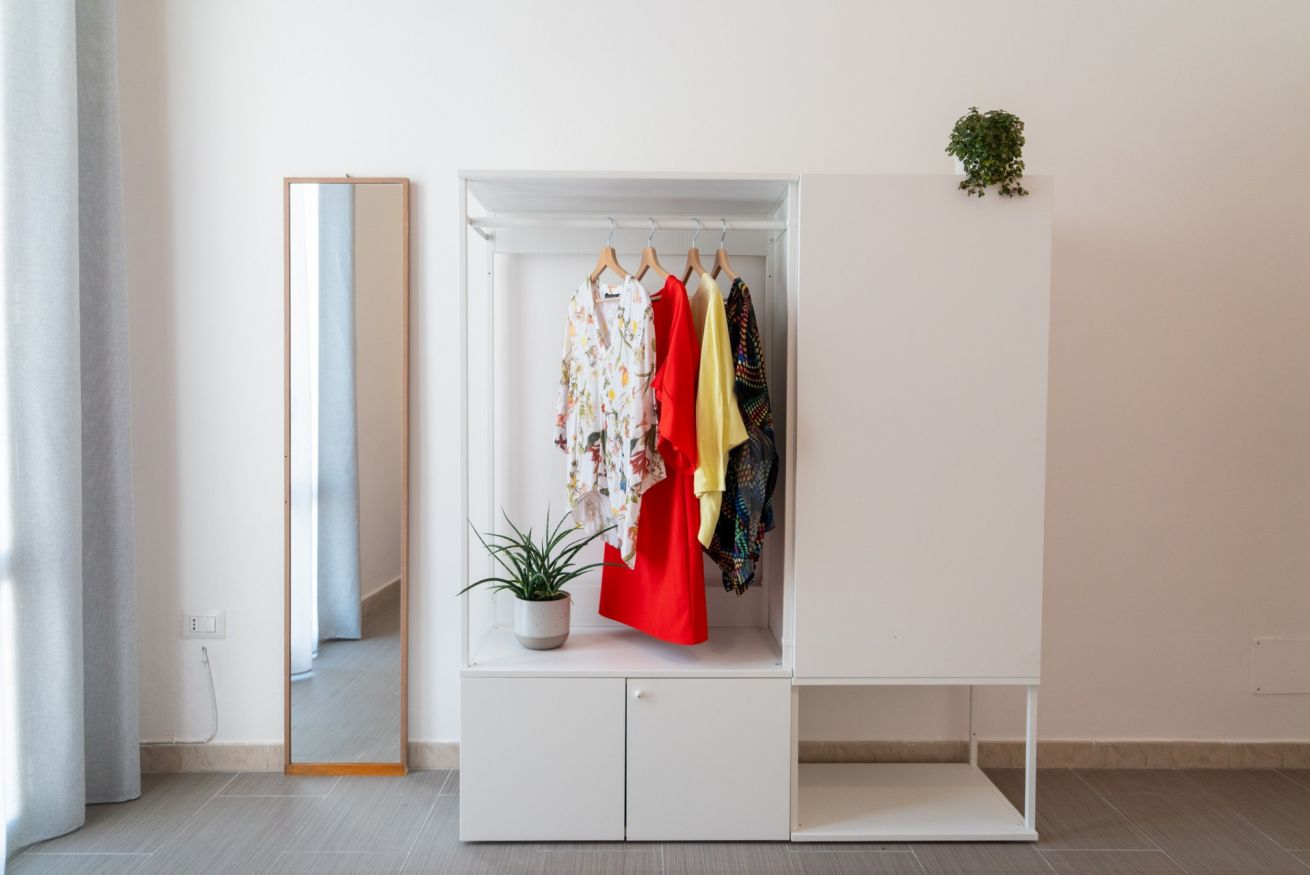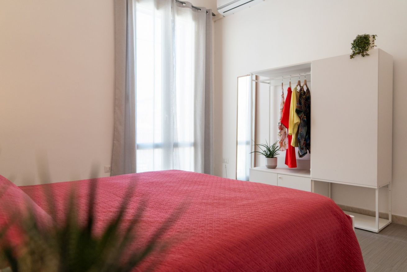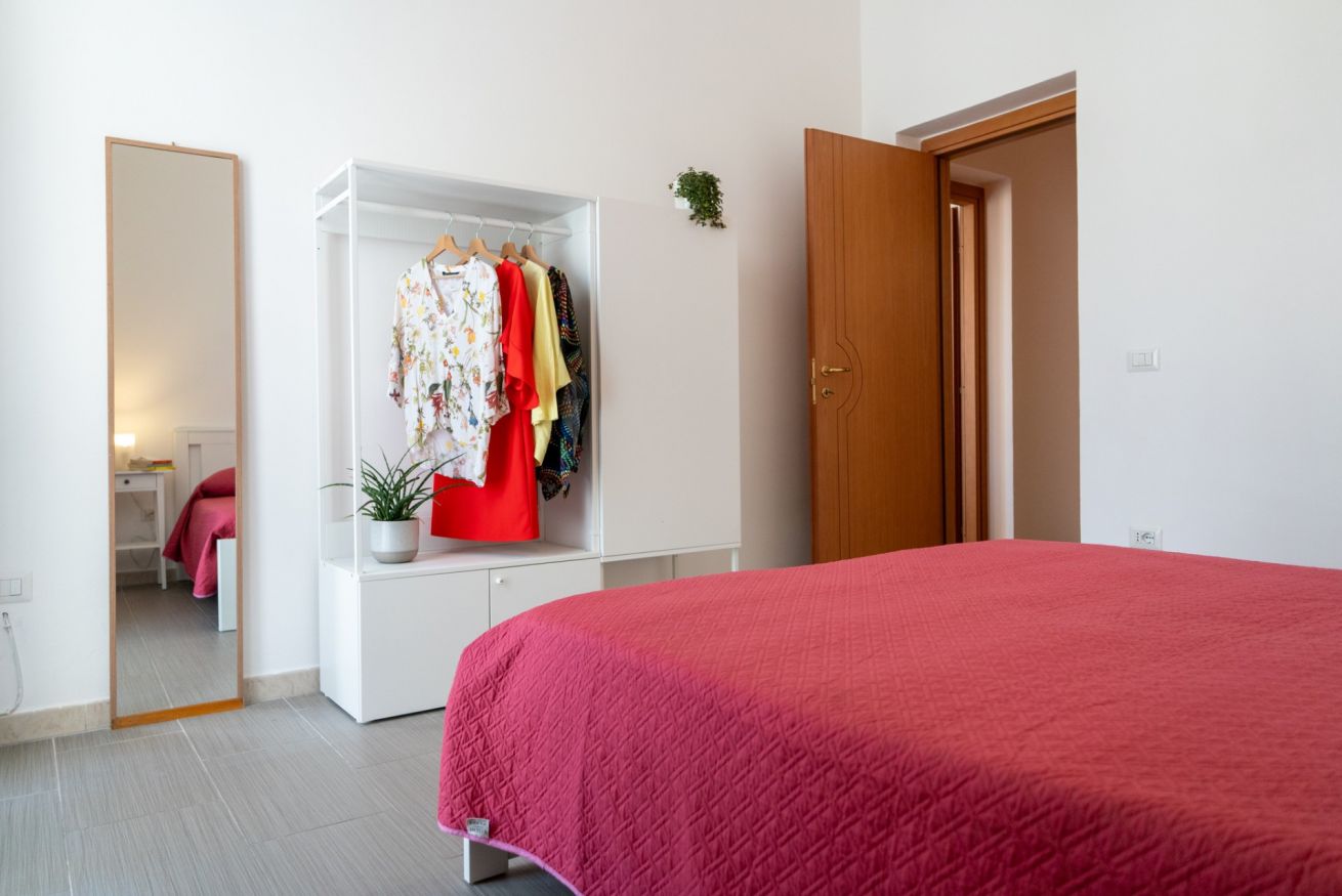 - CAMERA DA LETTO I con letto matrimoniale e armadio aperto;