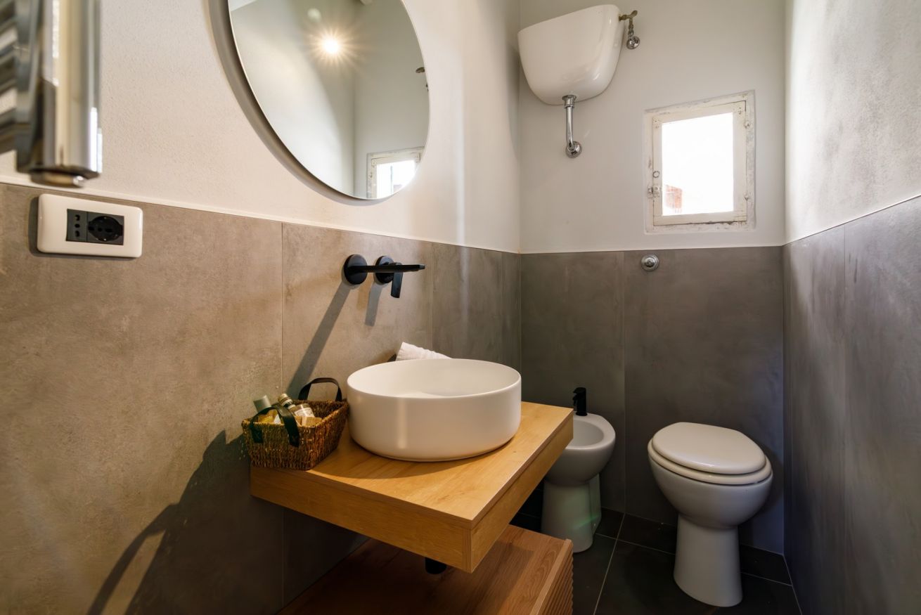 - SERVICE BATHROOM with sink, toilet and bidet.