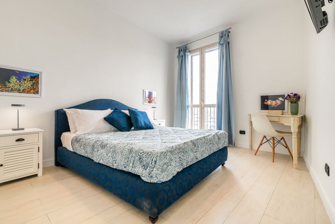 Moderno appartamento di 83 mq, perfetto per 5 persone, situato al secondo piano di un antico stabile (NO ascensore e alcuni gradini per accedervi). La proprietà è situata a La Cala, pittoresco porto situato nel cuore di Palermo, a soli 12 minuti a piedi dal centro storico.