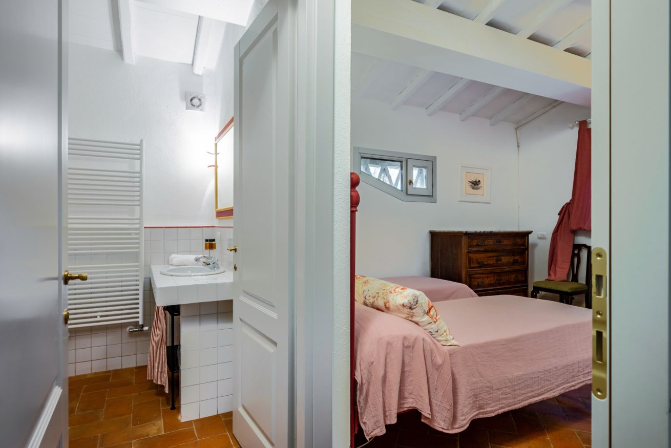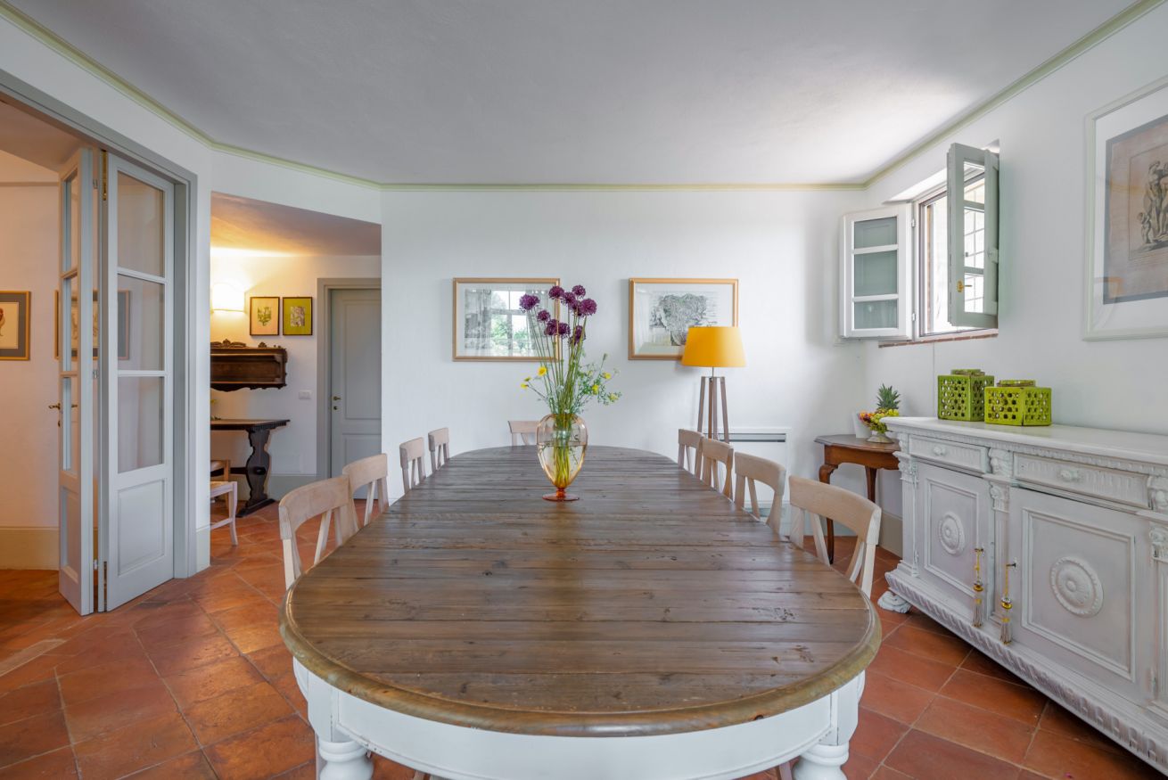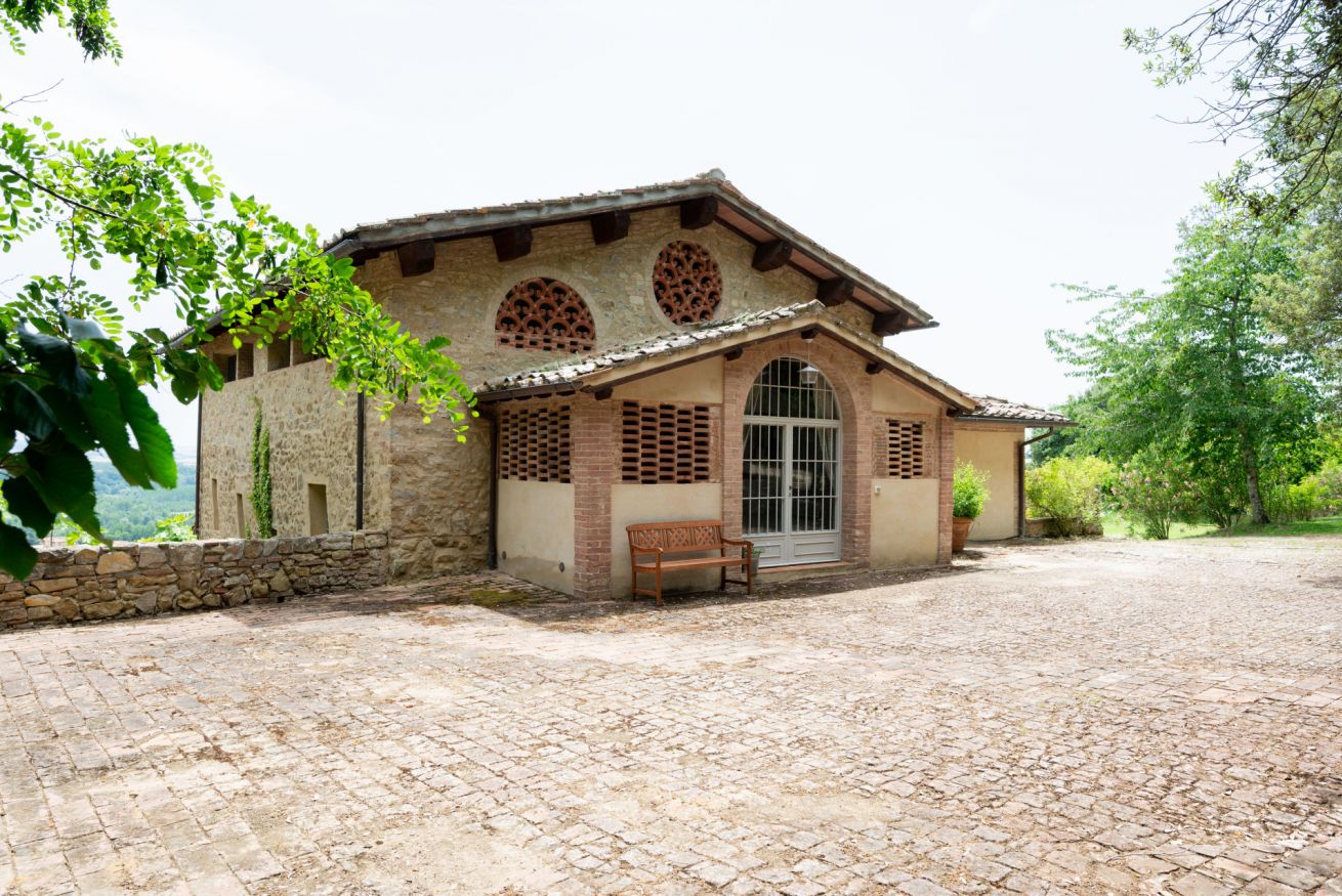 The accommodation consists of 4 bedrooms, lounge, living room, kitchen, 4 bathrooms, large garden, shared pool and panoramic terrace overlooking the beautiful Chianti.