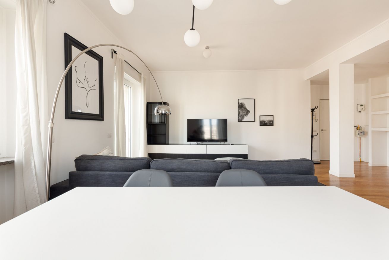 -SOGGIORNO con zona relax con divano, Smart TV 60'' e accesso ai 2 balconi.