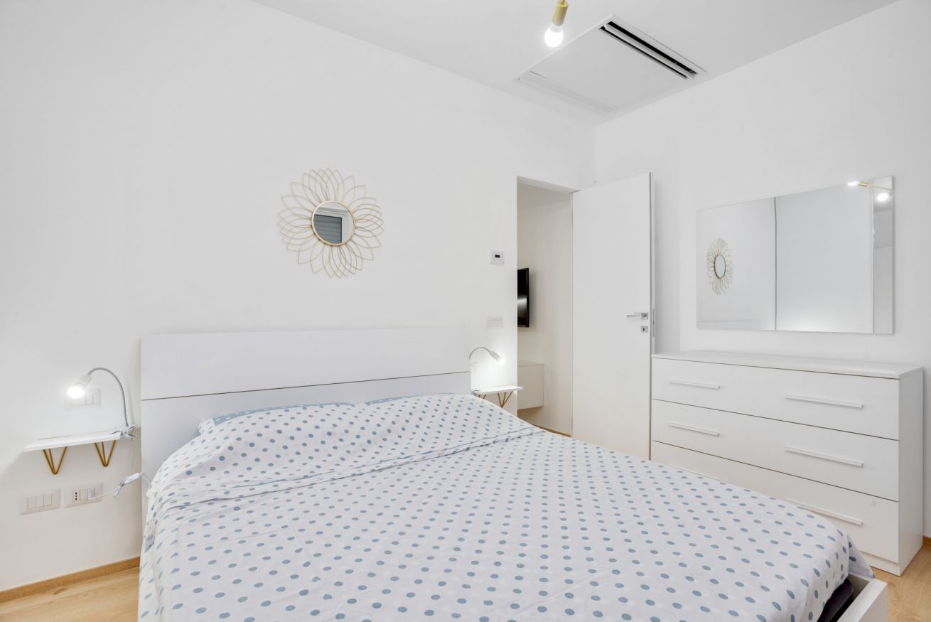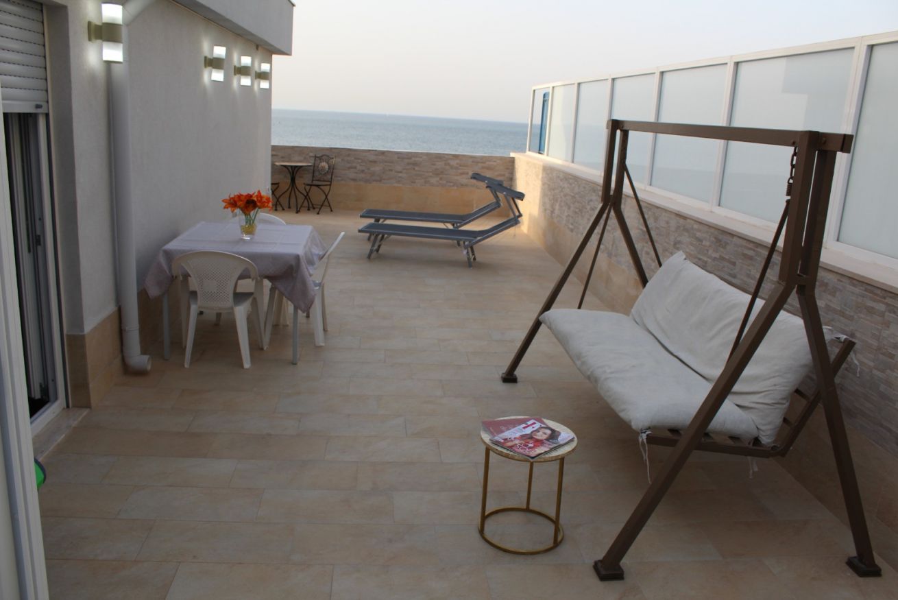Moderno appartamento di circa 50 mq, con meraviglioso terrazzo di 70 mq con vista mare e faro, in grado di ospitare 4 persone con ogni comfort. La proprietà si trova in posizione invidiabile, fronte spiaggia e soli 6 km dall’aeroporto, in una zona ricca di servizi come farmacie, supermercati e pizzerie, e a 20 metri dalla pista ciclopedonale. Si compone di zona living con angolo cottura, camera da letto, bagno e terrazza panoramica.