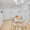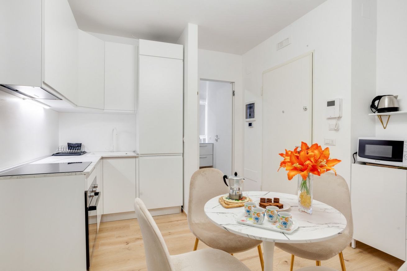 - ANGOLO COTTURA con piano cottura a induzione (4 fuochi), frigorifero con freezer, macchina del caffè, lavastoviglie, forno, microonde, bollitore, calici da vino, vari utensili da cucina, tavolo da pranzo e accesso alla terrazza (rialzato);
